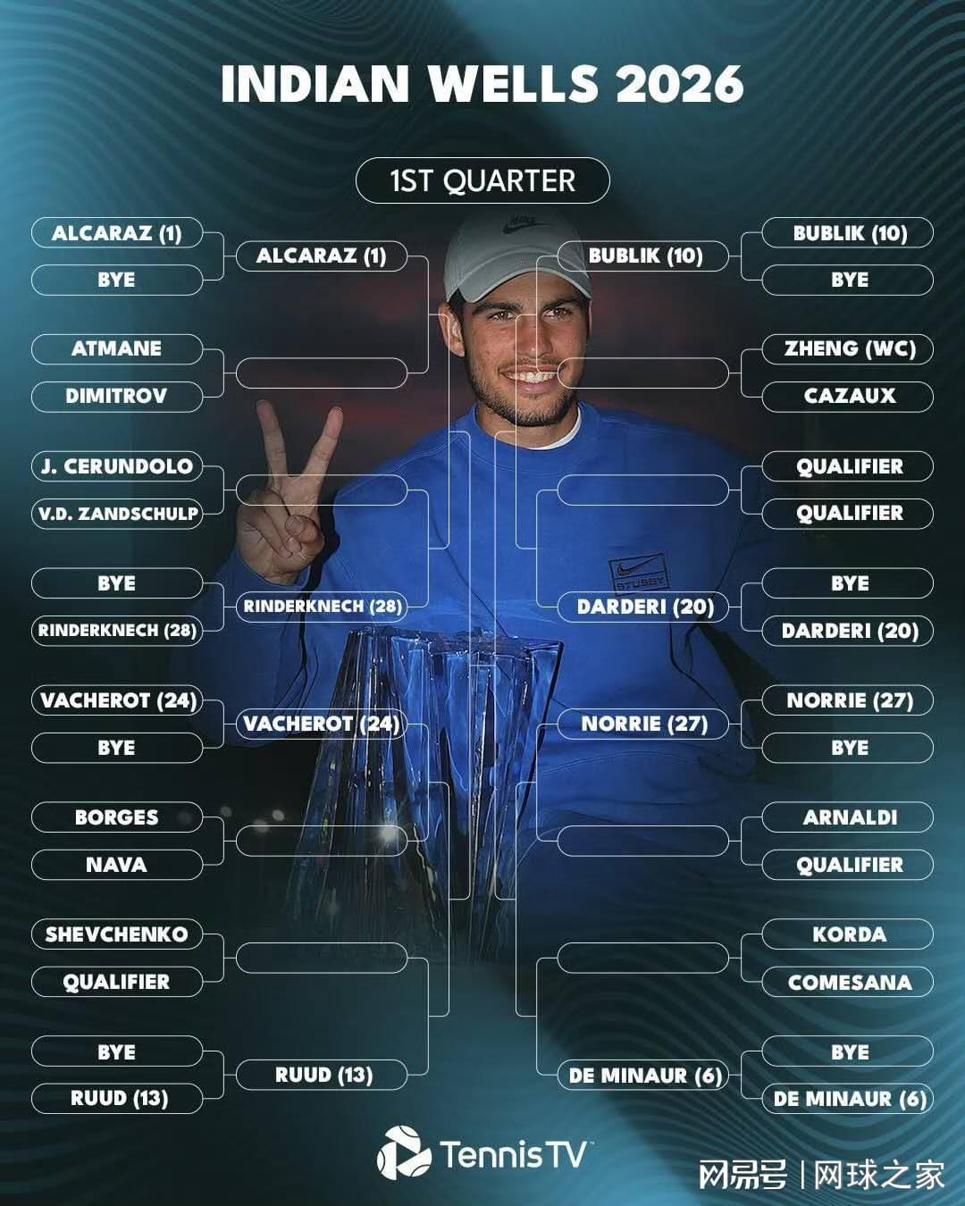 两届赛会冠军、开季已经取得12连胜的阿卡,将作为头号种子出征,和其同分在一个上半区的种子球员还有弗里茨、布勃利克、诺里、鲁德、莱赫卡、恩贝尔、穆泰等人。