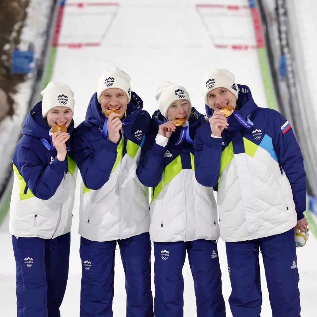 跳台滑雪赛场,斯洛文尼亚的普雷夫茨家族再次成为焦点。哥哥彼得曾在索契摘银夺铜,如今弟弟多门与妹妹妮卡将家族荣耀推向新高度:多门斩获个人大跳台金牌,并与妹妹联手卫冕混合团体冠军,妮卡则一人独揽个人标准台银牌和个人大跳台铜牌,实现单届冬奥集齐金银铜的壮举。这个来自克拉尼的体育世家,自2012年与匹克结缘以来,几乎每一次登上领奖台,身后都有那个红色三角标志的默默陪伴。