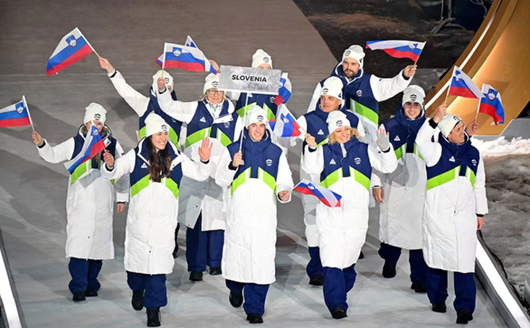 斯洛文尼亚总统娜塔莎身穿匹克装备看望本国代表团