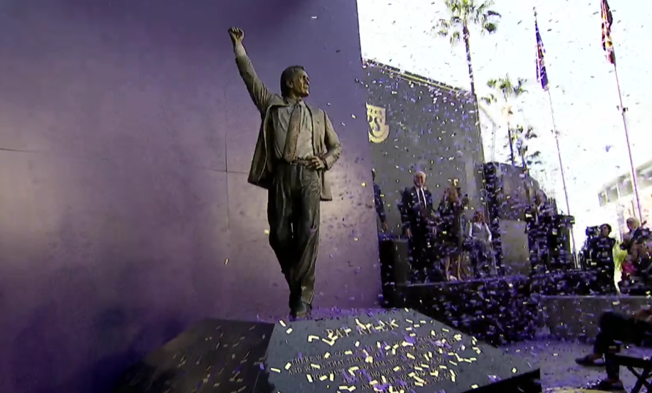 开云体育APP下载-莱利湖人雕像正式揭幕!韦德到场祝贺 美媒调侃两人雕像差距明显