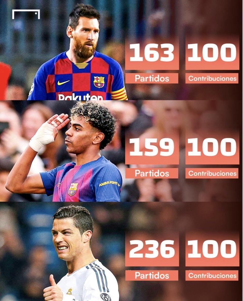 也正因为这场比赛把亚马尔的单场爆发彻底推了出来,后面这两组数据才更有对照价值。**一组看的是顶级攻击手把帽子戏法累积到了什么高度,另一组看的是亚马尔在这个年龄把参与进球推进到了什么速度。前者看长期产出,后者看起步效率,把下面两组数据放在一起,亚马尔现在这波上升势头就更直观了。